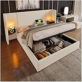 - Cama Doble con espacio de almacenaje: El estante del cabecero se puede utilizar para guardar teléfonos móviles y otros dispositivos electrónicos. Gracias al sistema de elevación hidráulica, el...
